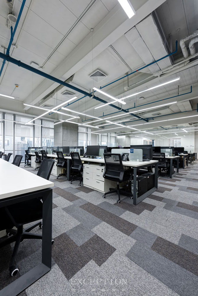一系列的玻璃窗呈現(xiàn)開闊的視野,自然裸露的天花、縱橫交叉的燈管,為現(xiàn)代空間里增添些許工業(yè)氛圍。