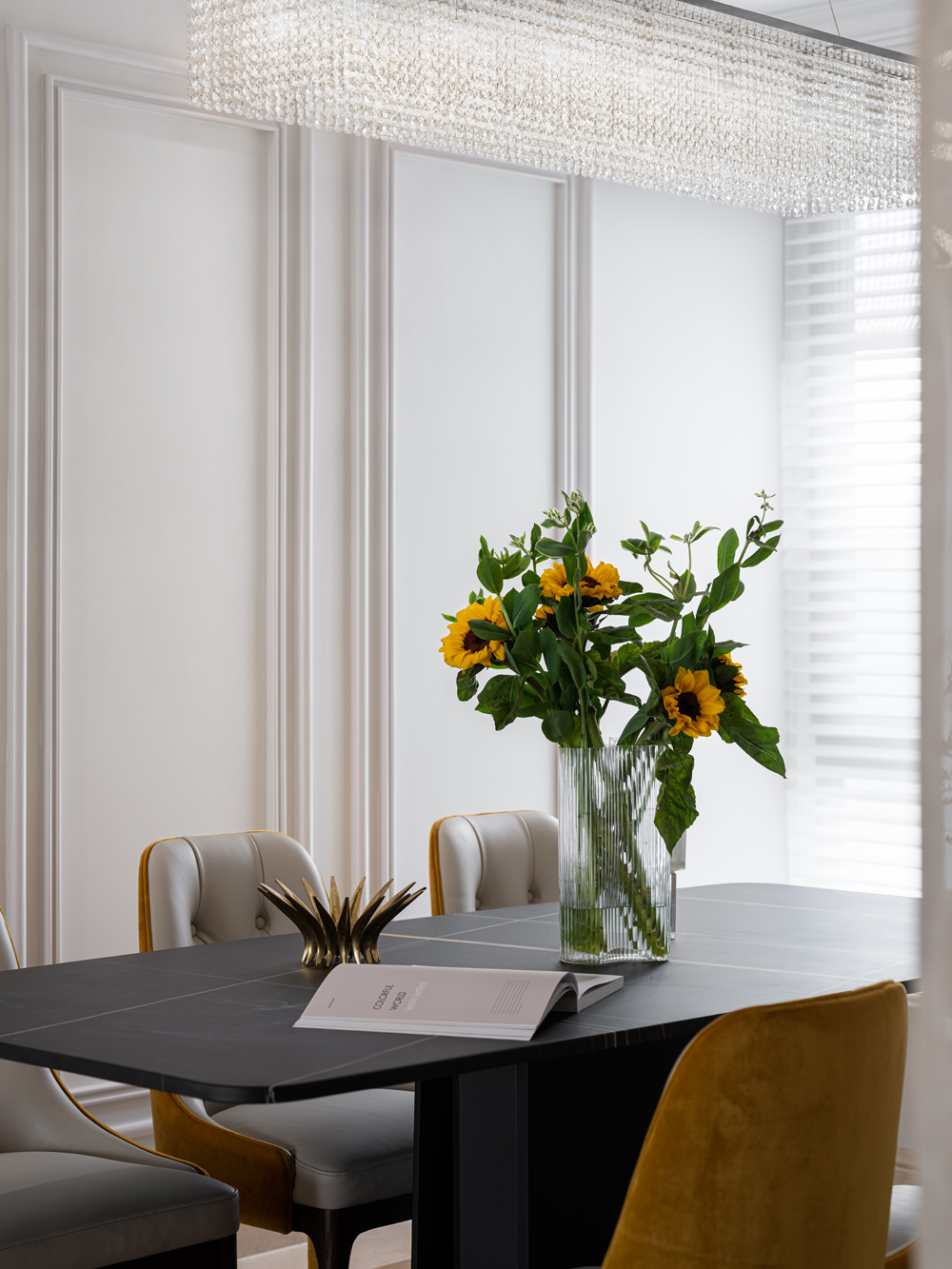 作為一個(gè)生活的調(diào)味空間,通透的空間給予居者更多有關(guān)美食藝術(shù)的想象力與理解,寓意希望的花枝在純凈的視界中散發(fā)鮮明而絢麗的審美意涵,在芳香中品味人生百味。