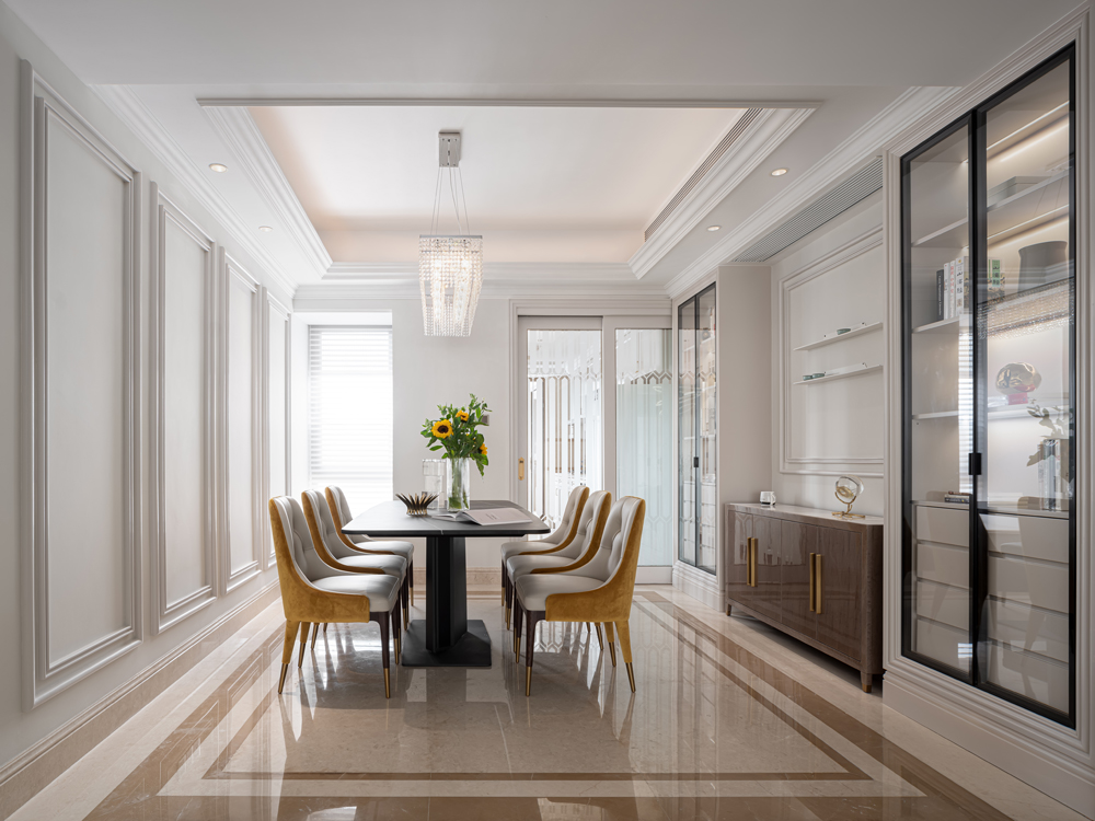 鑒于客戶對(duì)歐式輕奢美學(xué)的欣賞,鴻藝源在恒裕濱城原有歐式設(shè)計(jì)的基礎(chǔ)上,進(jìn)行了一次美學(xué)上的優(yōu)化升級(jí),賦予空間素雅澄凈、奢于自然的藝術(shù)內(nèi)核,通過定制化的設(shè)計(jì)讓生活的詩意萬象浸潤于點(diǎn)滴日常。