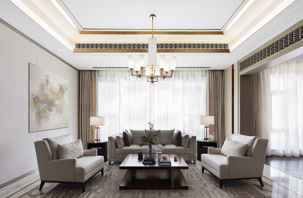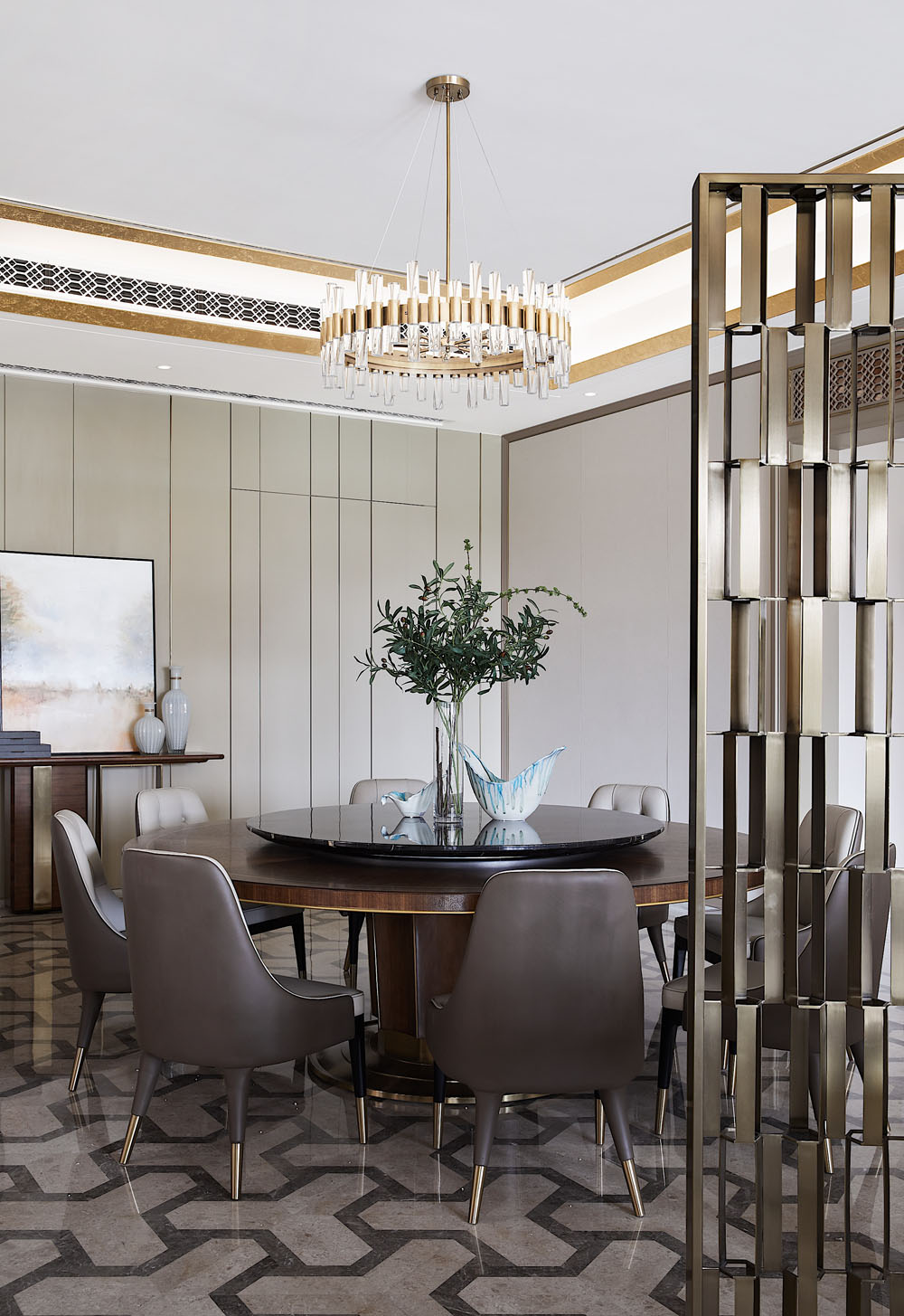 設(shè)計師鄭鴻以居者家族的凝聚力為起點,結(jié)合地域文化抒寫歸家的情懷。在輕奢美學(xué)與自然風(fēng)物的融合滲透中,傳遞著充滿雅趣而恒久的審美,讓空間充滿安適舒愜的韻致。