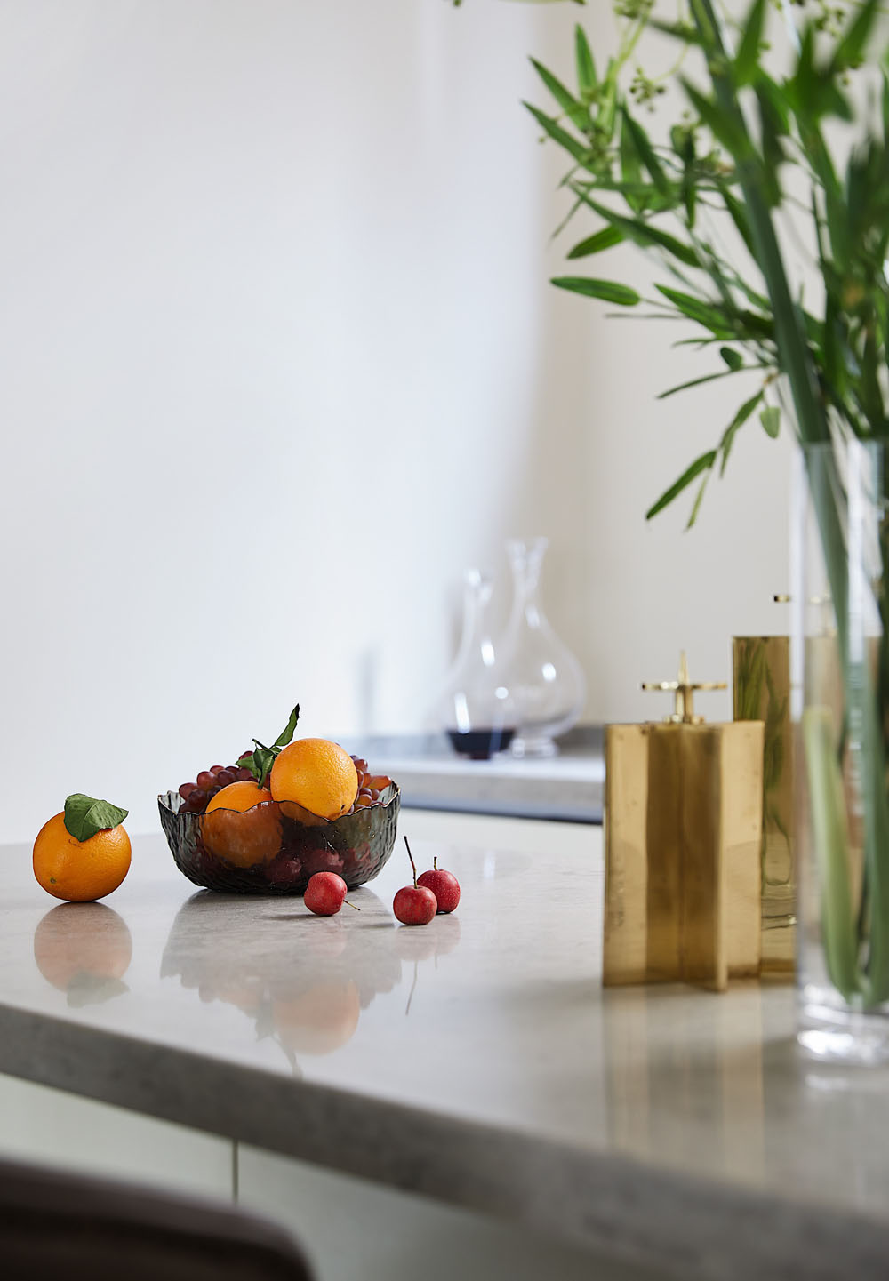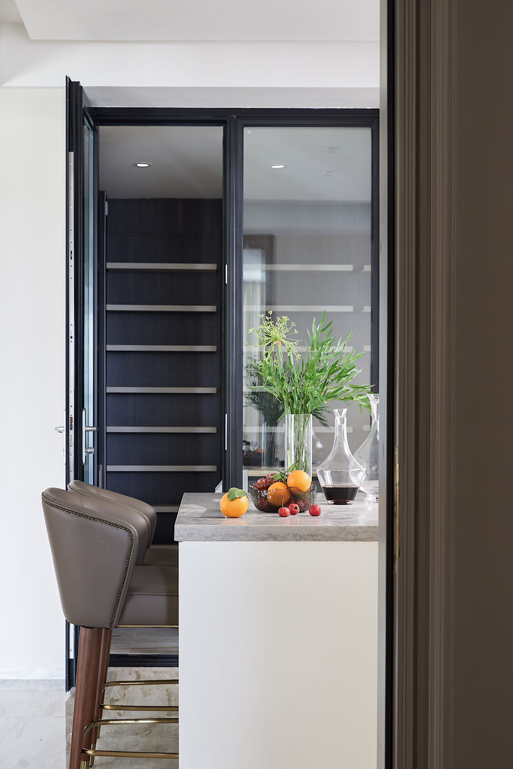 日光通過百葉窗映照在西廚島臺上,順應(yīng)季節(jié)時令,品嘗最鮮甜的果味,亦或倚靠吧臺,來一曲舒緩慵懶的藍(lán)調(diào),和愛人小酌片刻,都是精致的存在。