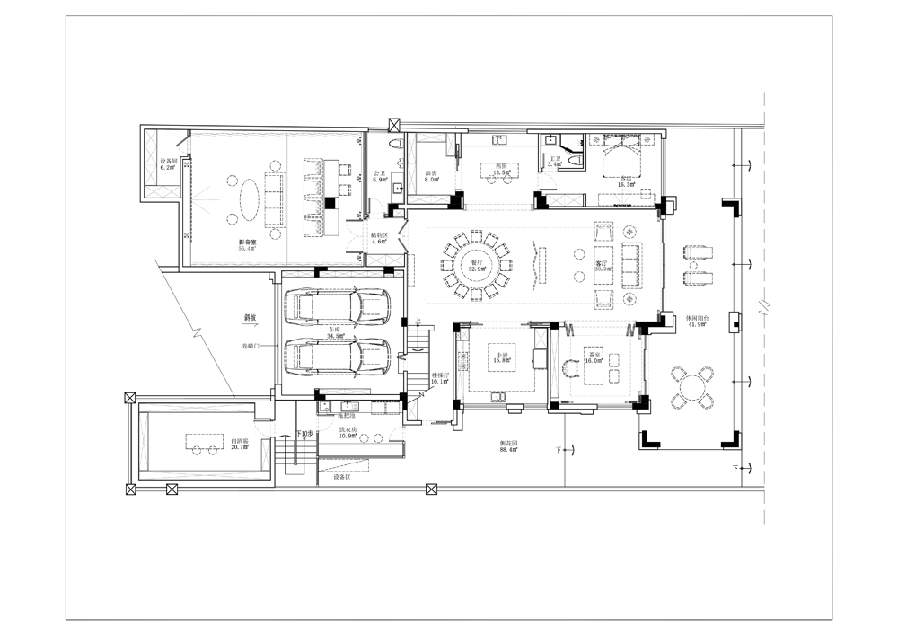 負(fù)一層的影音室營構(gòu)了一個家人互動的休閑場景,智能化影音設(shè)備在有限的空間里提供了無盡的想象,通過豐富多彩的感官體驗令情緒得到放松。
