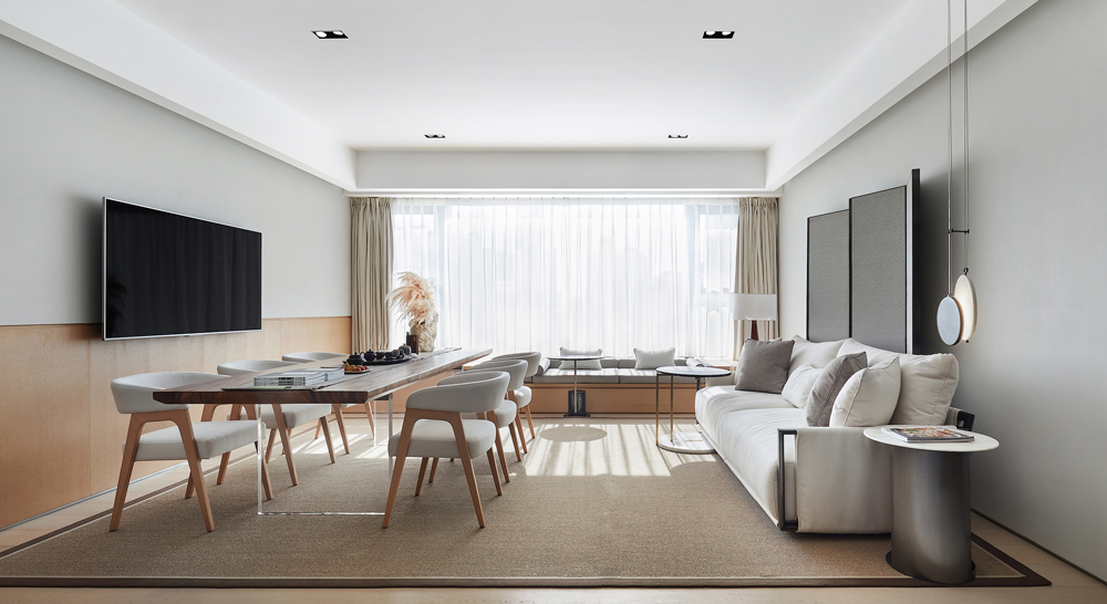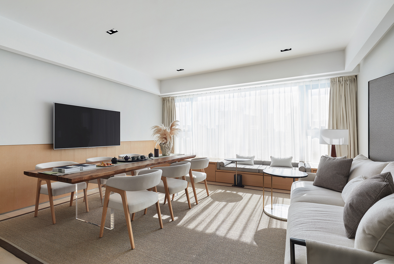 設(shè)計(jì)師徐靜充分考慮了業(yè)主行業(yè)沙龍、閨蜜下午茶、料理烘焙等個(gè)性化需求,織物與木質(zhì)的完美組合,自然而質(zhì)樸,在不斷變幻的光線中,設(shè)計(jì)成就了迷人的色彩美與律動(dòng)美。