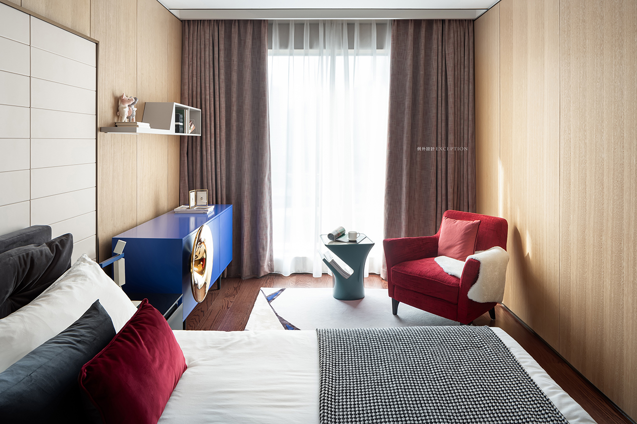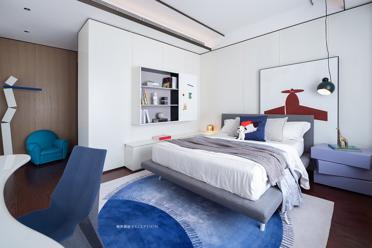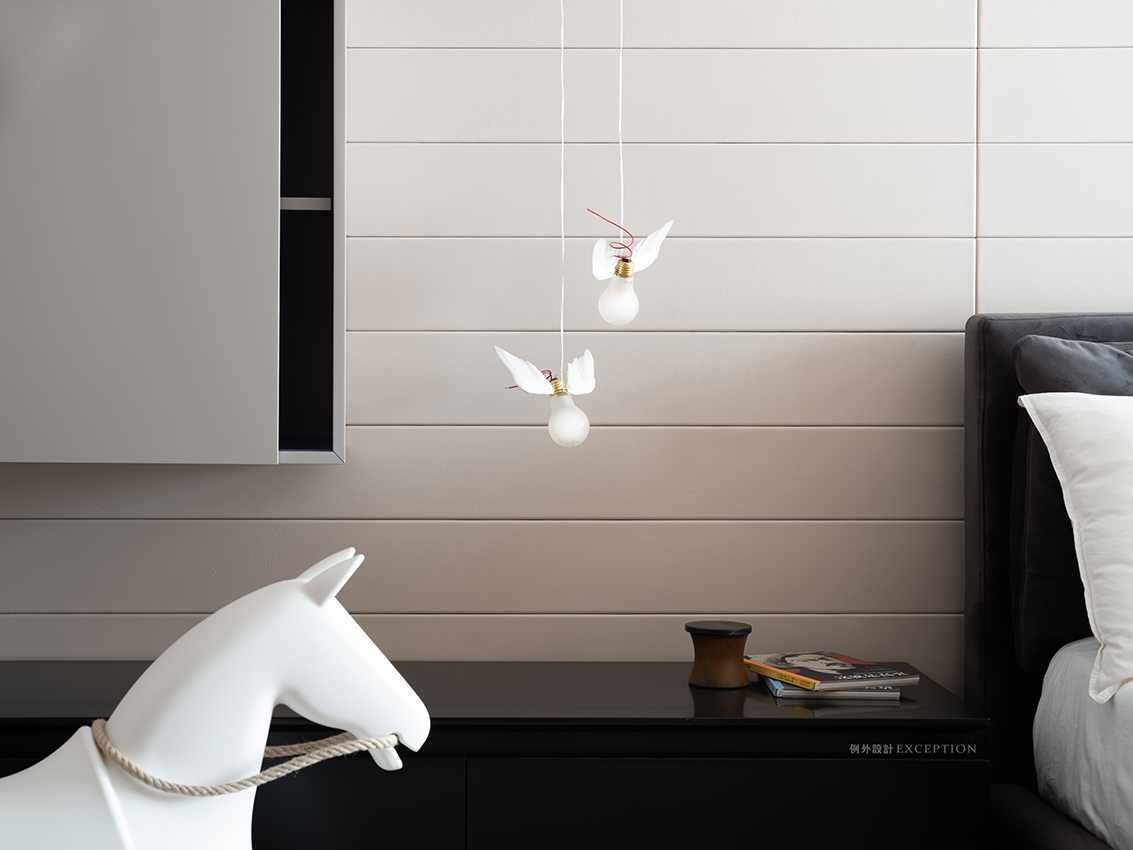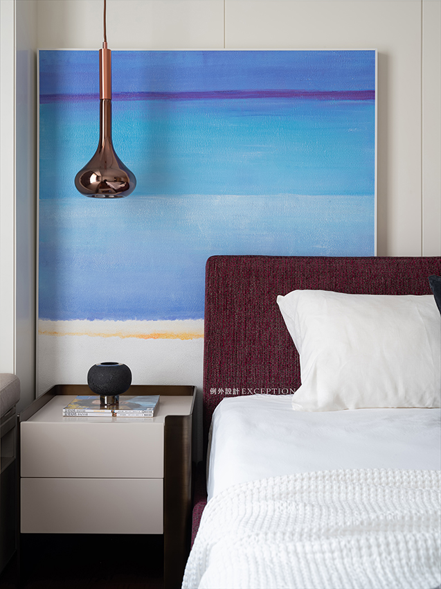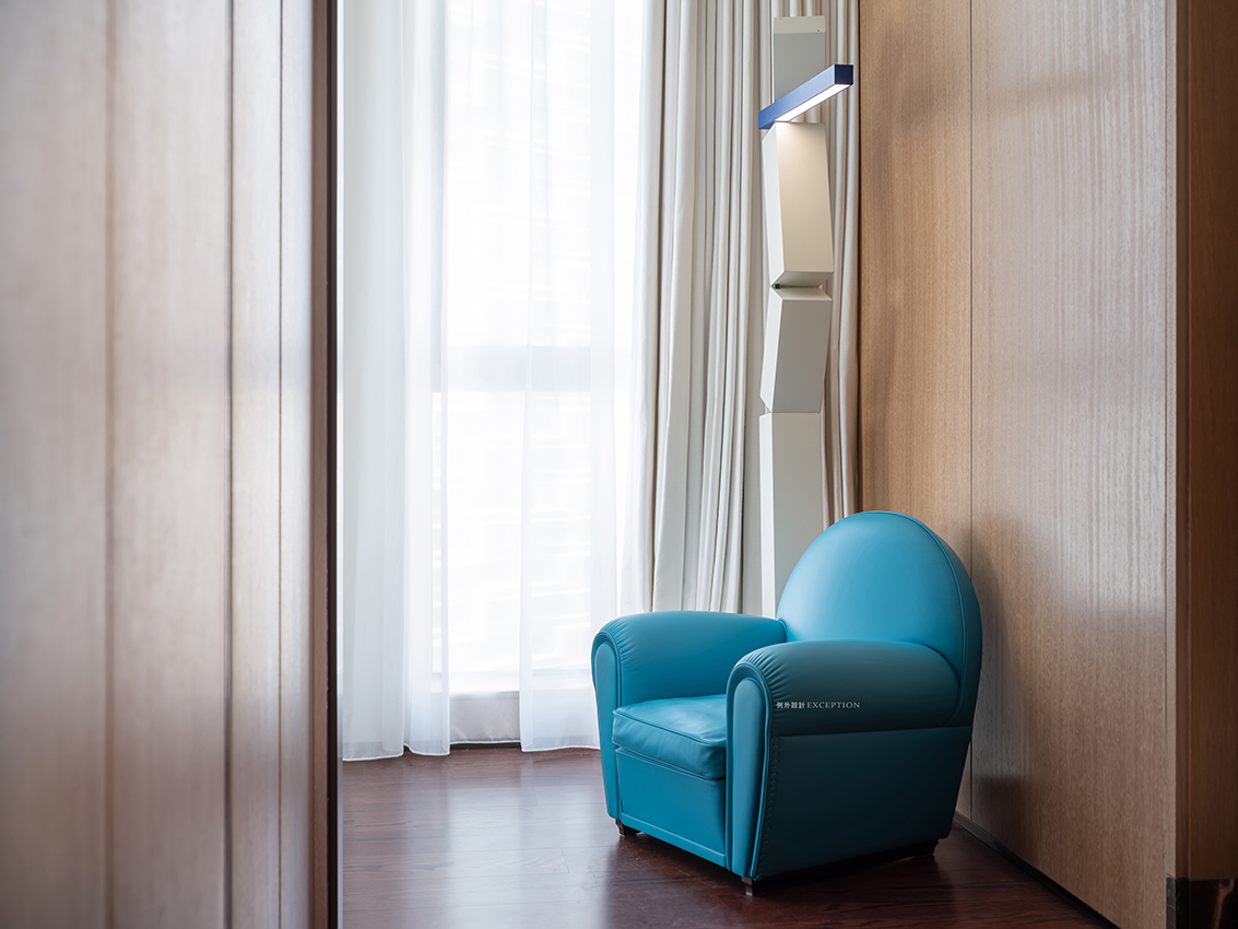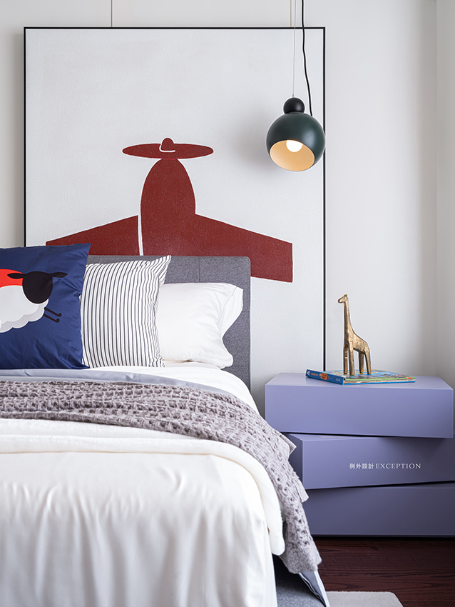 對藝術(shù)的向往不分年齡,無關(guān)時月。長輩房以木色塑造平實質(zhì)樸的意境,飛鳥燈玲瓏巧致,與燕尾元素地毯一起賦予空間祥和美滿的生活愿景。當(dāng)悠揚的曲調(diào)從嵌入式音箱里緩緩而出,一切都恰到好處,最好的狀態(tài)便是隨心所愿地墜入對生活的本真期待,慢慢去感悟。
