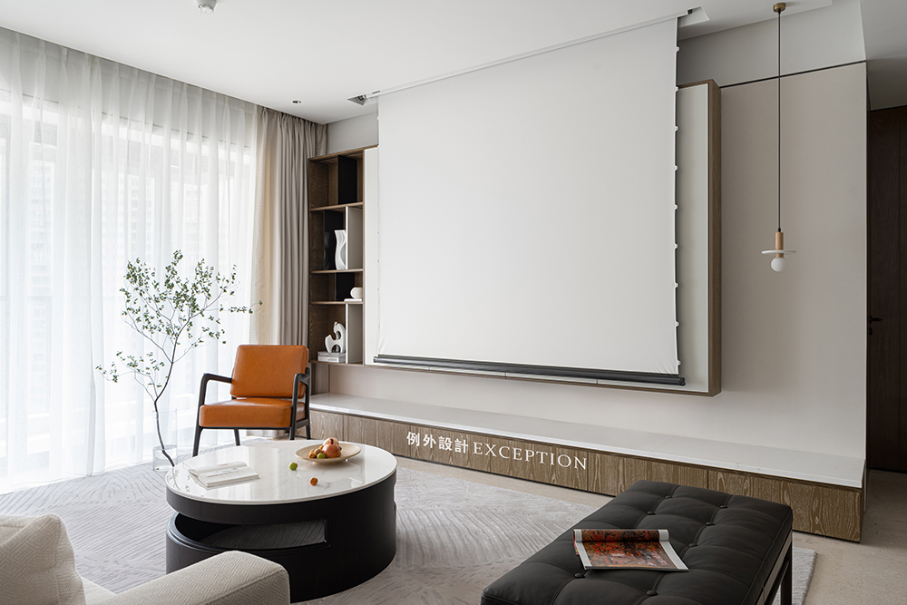 H太太說希望客廳是享受親子時(shí)光的地方,用投影取代傳統(tǒng)電視的設(shè)計(jì),一整排收納柜可以存放各類豐富的書籍供孩子取閱,減少電子產(chǎn)品對(duì)他們學(xué)習(xí)力的影響。一家人坐在一起聊天、觀影,歡聲笑語記錄著孩子成長(zhǎng)的黃金歲月,溫柔了最簡(jiǎn)雅平淡的生活日常。