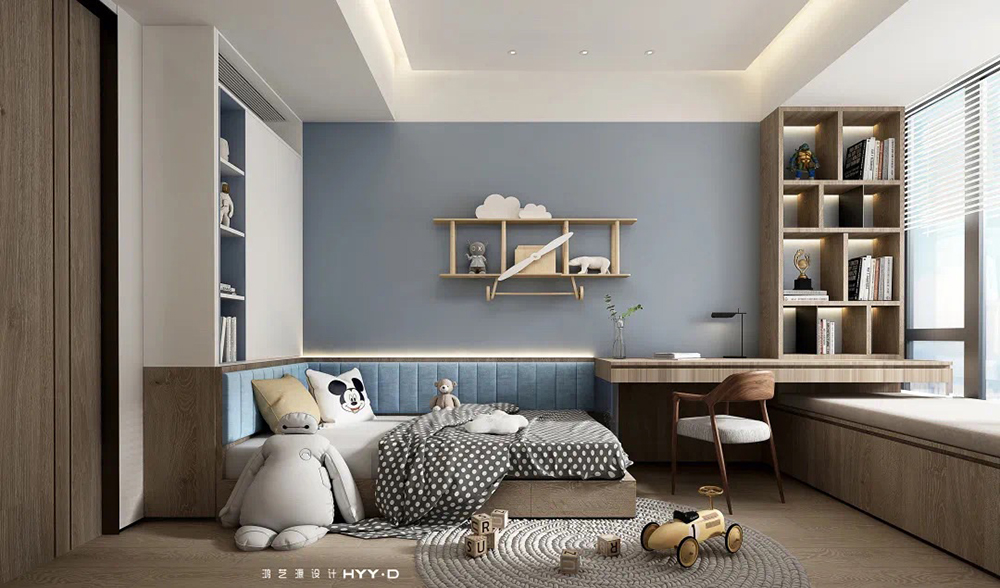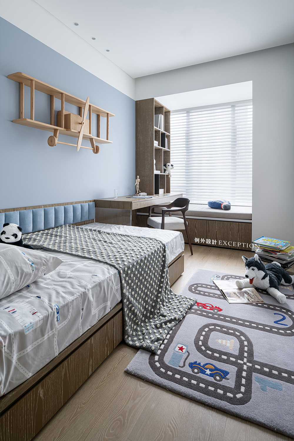 巴烏斯托夫斯基說過:只有當(dāng)我們成為大人的時(shí)候,我們才開始懂得童年的全部魅力。在兒童房的設(shè)計(jì)中,充分考慮了孩子的成長(zhǎng)周期,空間布設(shè)靈活可變。木飛機(jī)、卡通小擺件、童話繪本,每一個(gè)細(xì)節(jié)都是在完滿孩子的小小世界。