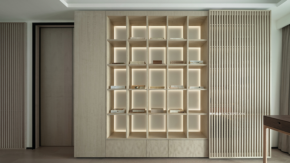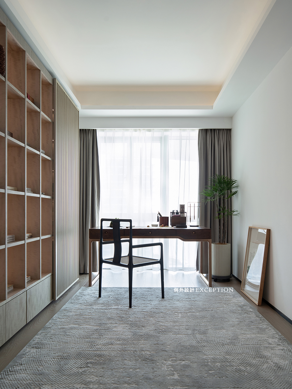 四進式格局將書房、主臥、衣帽間、臥室依次鋪排,清素的配色是女主人優(yōu)雅性格的再次體現(xiàn)。清淺的光線,朦朧的花影,自然的撫慰也是幸福生活的秘密來源,生活于此,感受愛意流動,家也由此愈漸豐盛。