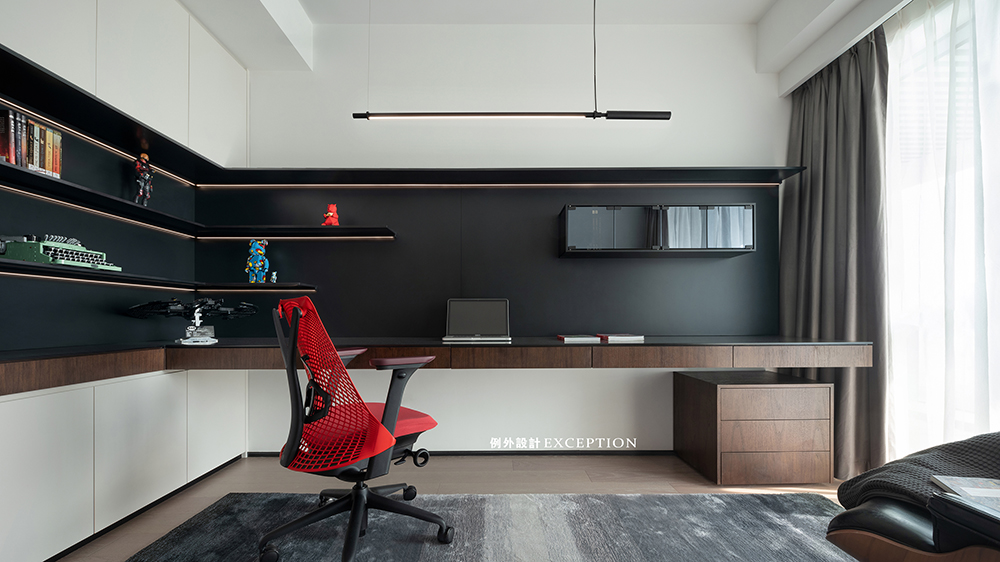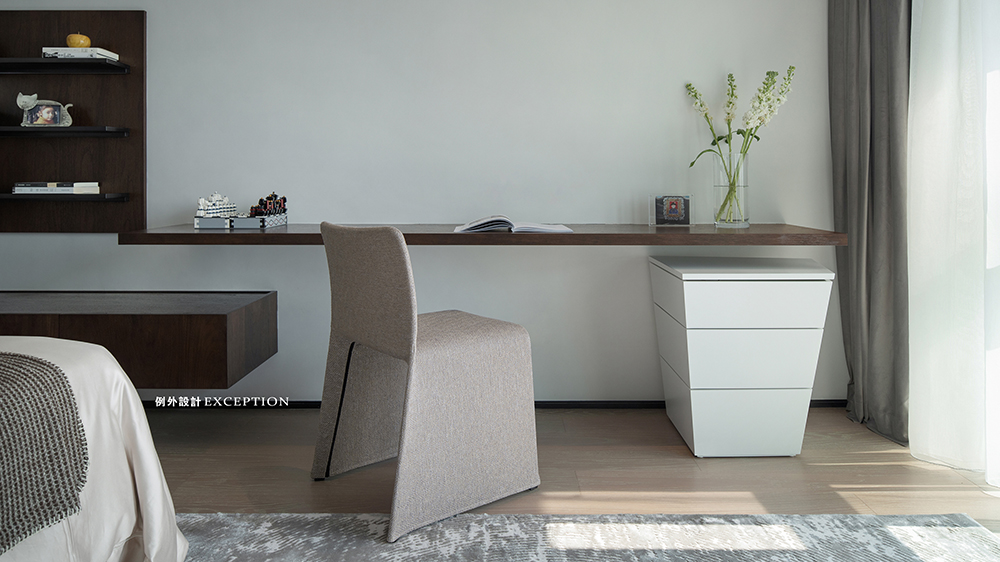 男孩房觸手可及深圳灣的落日和淡淡霧靄,流線的窗形,融入結(jié)構(gòu)主義的表現(xiàn)力,也讓休憩之余的視覺審美擁有了自然清雅的落點。