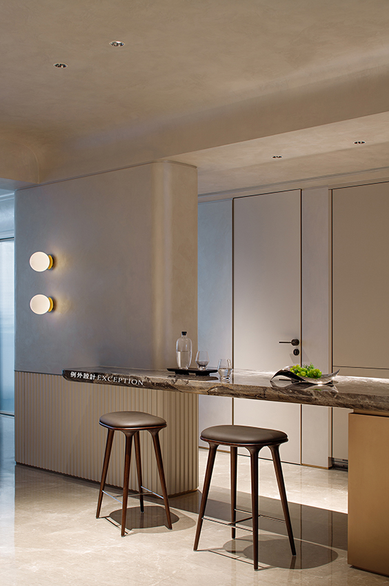 純凈的空間視野為后續(xù)的生活留駐更多的成長可能性,大理石島臺結(jié)合原始墻體打造出氛圍感十足的小酌時光。餐桌和島臺如同默契無言的伙伴,陪伴著屋主一日三餐的溫暖光景,在風(fēng)味的試探中鐫刻生活樸質(zhì)無華的底色。