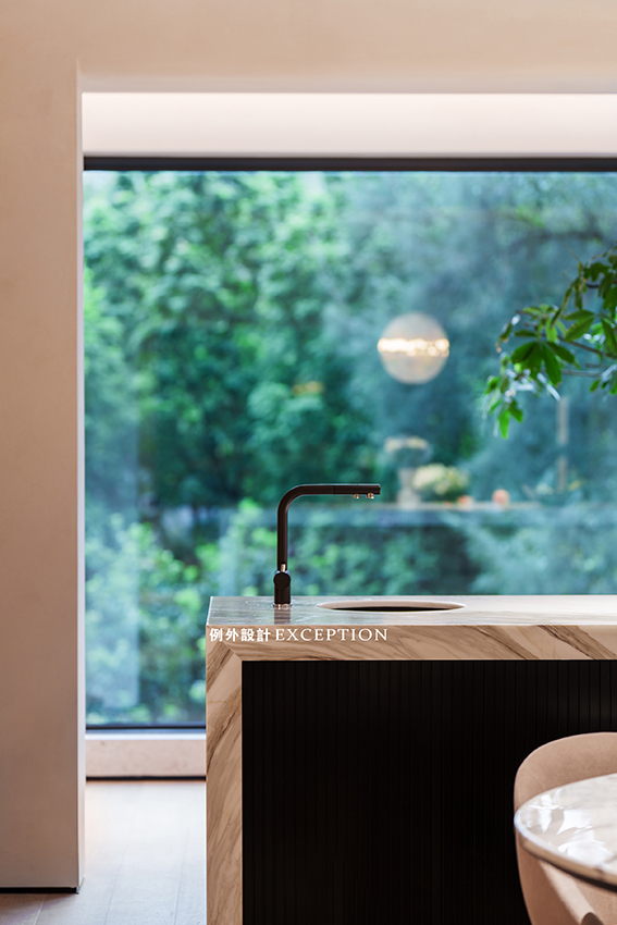 空間承載著家人邁向更加廣闊天地的夢(mèng)想,也記錄了煙火里的平淡日常。四季變幻的美景就像一幅天然的畫(huà)作,在家人眼前徐徐展開(kāi),以靜謐的姿態(tài)為家人帶來(lái)自然的能量。而室內(nèi)也與其達(dá)成默契,水紋地毯比擬漾開(kāi)的層層漣漪,edra白色沙發(fā)如同緩緩行進(jìn)的幸福之舟,載著所愛(ài)的人,親歷人間勝景,亦真亦幻,心曠神怡。