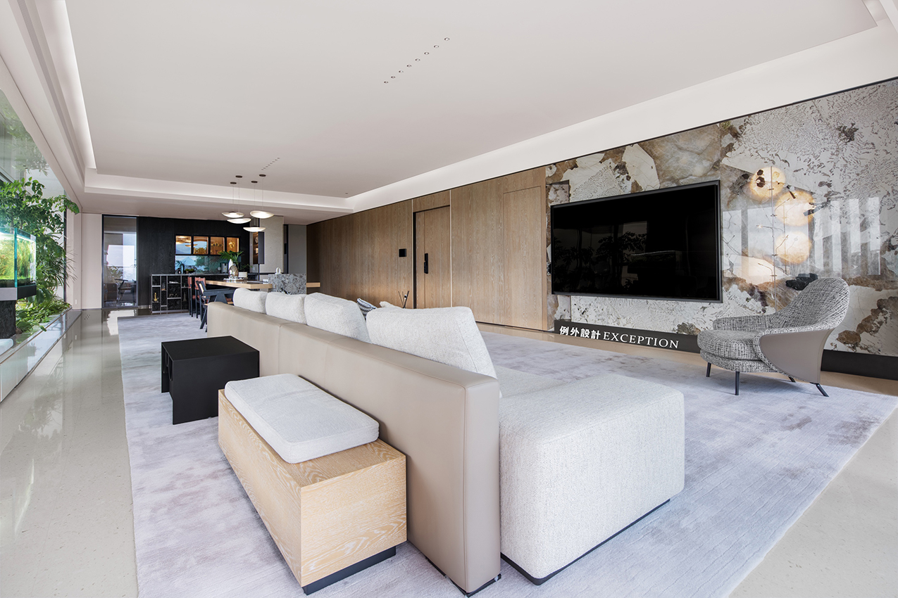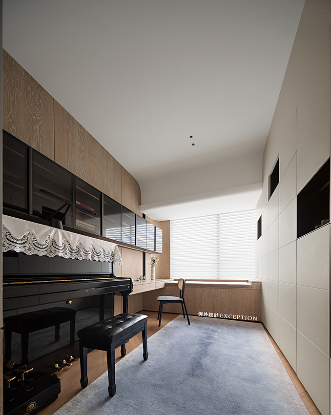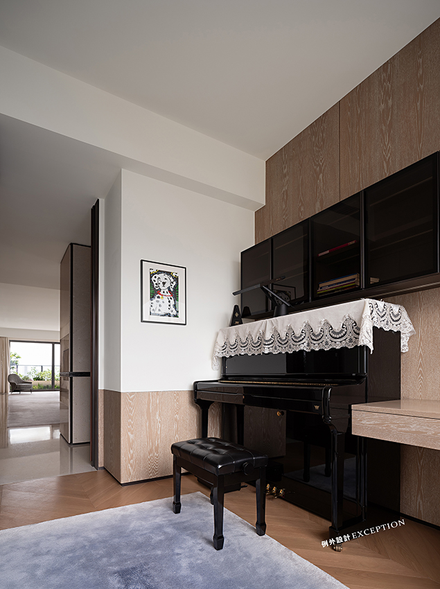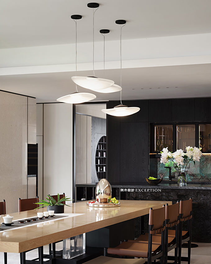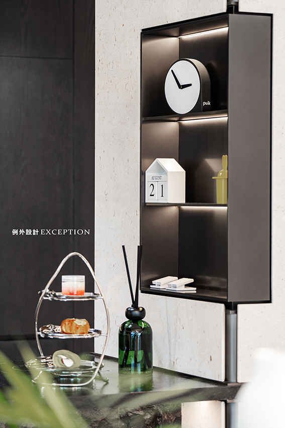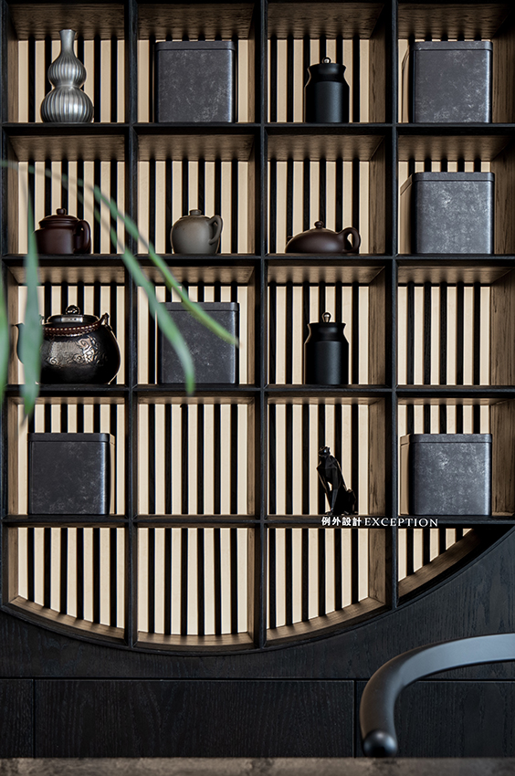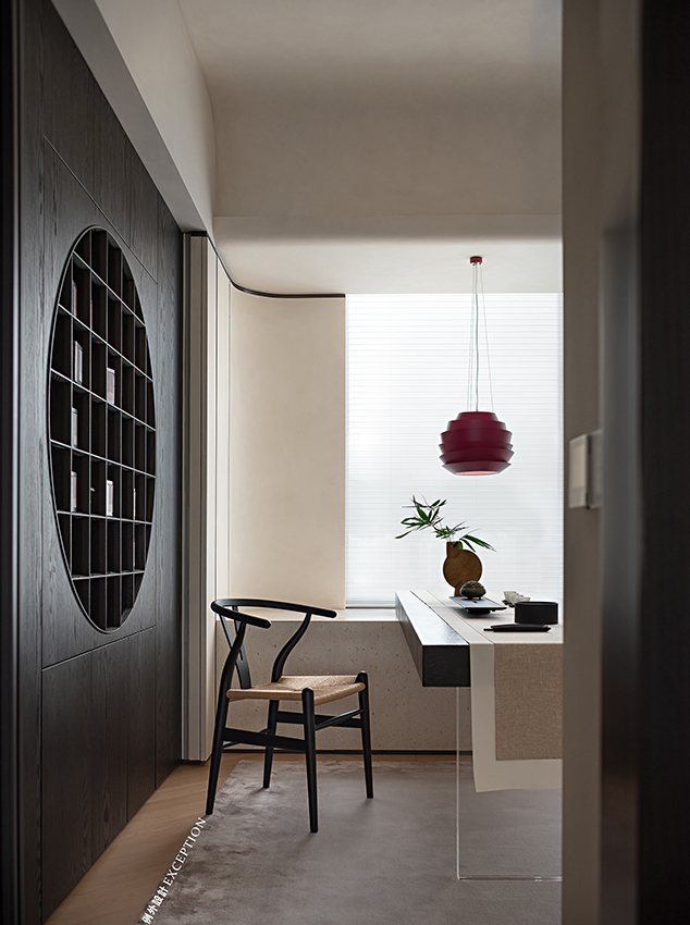 茶室則是女屋主的私享空間,融入傳統(tǒng)東方的元素,圓月型開放格大方地展示著她對(duì)茶文化的喜愛與品位??臻g整體氛圍雅致,茶臺(tái)借景窗臺(tái),流露出一種通透閑適的平和感。梁實(shí)秋說:“人類的最高理想應(yīng)該是人人能擁有閑暇?!狈怕畹哪_步,細(xì)細(xì)品味茶香,在繁忙都市里也是一種難得的精神享受。