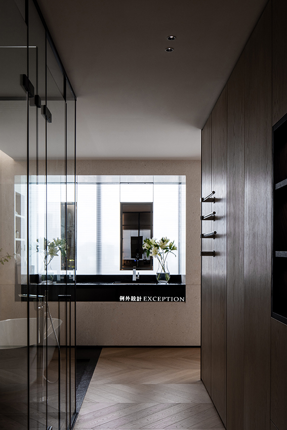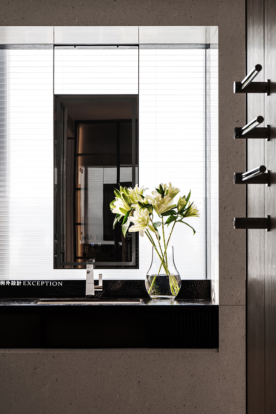 主衛(wèi)的視覺感非常輕盈,金屬邊框勾勒出極簡(jiǎn)舒適的感覺,壁龕上的花朵小畫是屬于屋主的生活藝術(shù),來點(diǎn)音樂,在沐浴精油的香氣中,讓一天的疲憊緩緩散去。