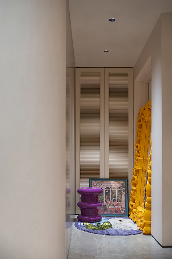 一副拼圖、一面ins風(fēng)的鏡子,一個(gè)換鞋凳和一塊小圓毯,形成了出電梯右手邊的第一視感:活潑時(shí)尚。好奇這個(gè)家里面會(huì)有哪些更讓人驚喜的東西。