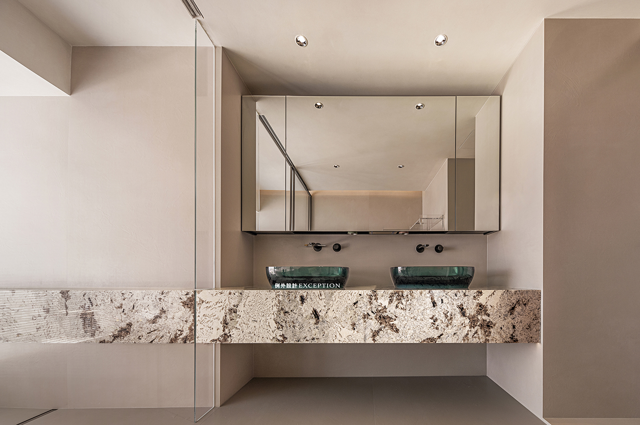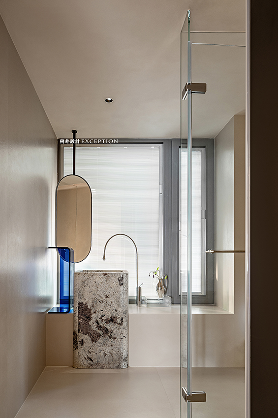 主衛(wèi)清爽簡潔素樸,沒有過多的裝飾,全景落地窗賦予空間良好的通透感,在張弛有度的居住哲學(xué)中,保留對(duì)生活最純粹的感受和向往。