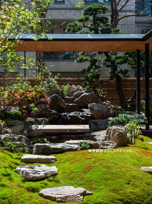 推開(kāi)庭院門(mén)扉,中式山水的雅致?lián)涿娑鴣?lái),水聚天心的格局賦予了場(chǎng)域源源不斷的能量。綠意蔥蘢,花枝清麗,池影蕩漾,閑庭信步其間,心緒瞬間得到寧?kù)o。