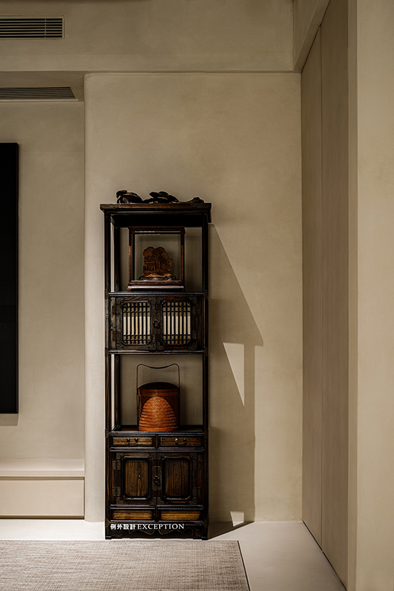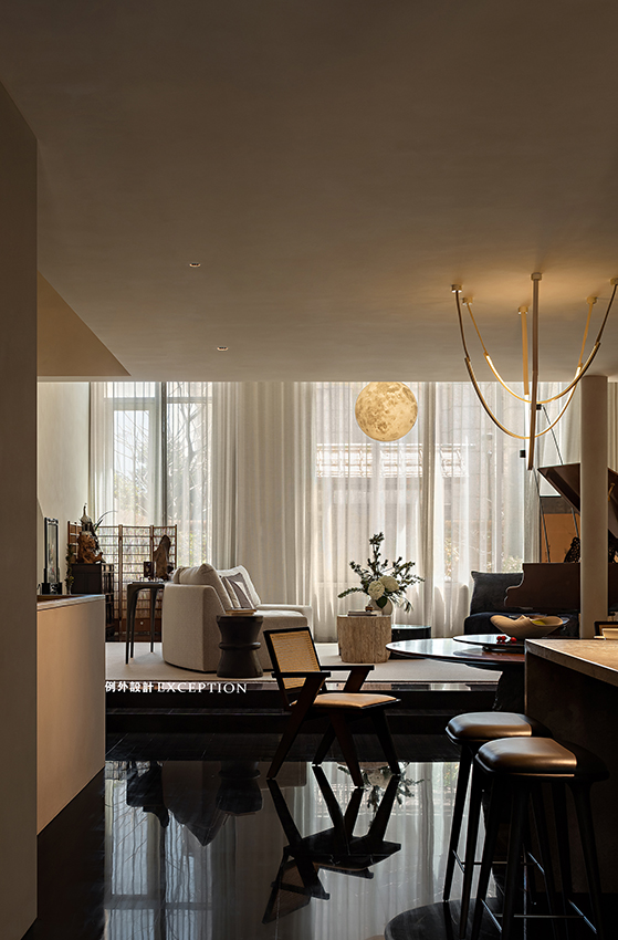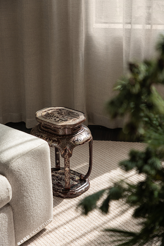 設(shè)計(jì)將往昔的器物與當(dāng)下的藝術(shù)相結(jié)合,創(chuàng)造出實(shí)用價(jià)值之外的精神之美??臻g盡可能打開(kāi),讓家人的互動(dòng)形成“你中有我,我中有你”的氛圍,讓能量在此溫情交互。