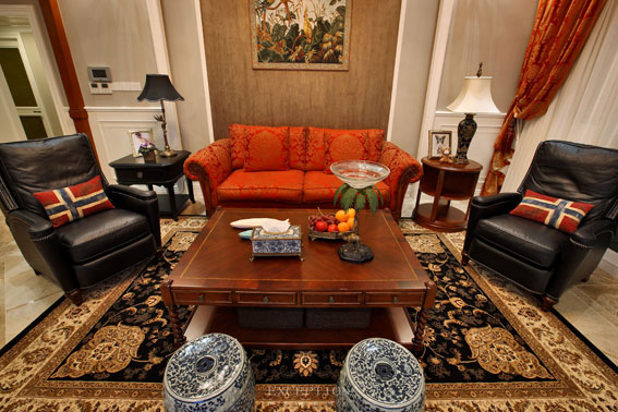 不知道別人是怎么定義愛情的,在我看來,愛情是人世間最大的奇跡和最華麗的冒險——最初互不相識的兩個陌生人,冥冥中命運的齒輪不期卻注定緊緊咬合在一起,歲月流轉(zhuǎn),某個夕陽下的柳樹邊,某個街頭的轉(zhuǎn)角處,我們相遇、相識、相知、相守,相依終老,或甜蜜或憂愁,一路上塵緣羈絆,一步一步走過有你有我的歲月,卻不覺成就了“執(zhí)子之手,與子偕老”的美麗童話。誠如本案業(yè)主的愛情物語,先生偏愛濃郁熱烈的美式風情,而太太執(zhí)著清新內(nèi)斂的歐式風格,不可調(diào)和的審美視角,唯有愛與設(shè)計才能將其牽引向平衡的兩端。