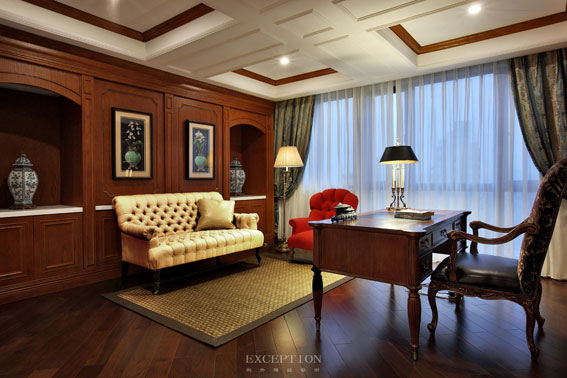簡歐風格的迷人之處就在于造型、紋路、雕飾和色調(diào)簡約而細膩,耐人尋味處散發(fā)出亙古久遠的芬芳。而在美式風情的渲染之后,淡妝濃抹的木色,為細膩溫婉的硬裝潤色七彩陽光,砰然撞擊著視網(wǎng)膜的最大閾值,為靜美的空間注入了一份熱情的浪漫。