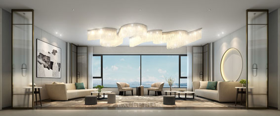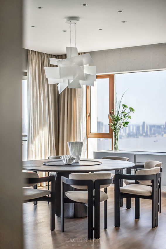 一個融合雅澹氣質(zhì)與休閑氛圍的會客空間,需要注重空間的私密感和尊享氣質(zhì)。超大面積落地窗引入室外無限江景,東方意象與現(xiàn)代簡約藝術(shù)在空間中相交織,打造靜雅脫俗的美學(xué)體驗。