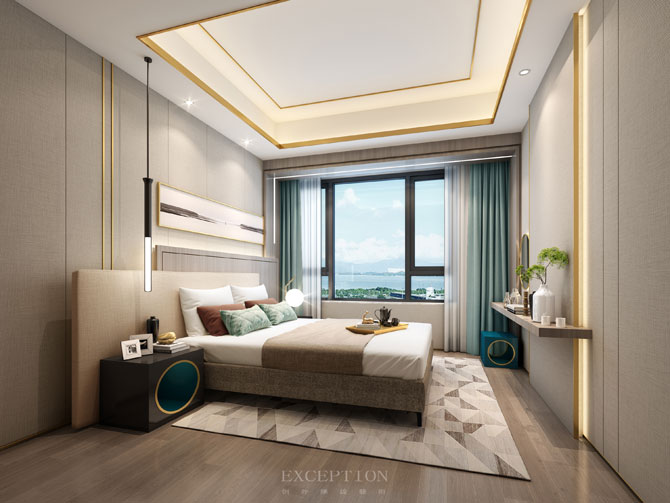所謂的對(duì)稱平衡都是一種相對(duì)的狀態(tài),床頭的雙層交叉設(shè)計(jì)在視覺上模糊了傳統(tǒng)意義上的中心點(diǎn)概念,開闊了入門的空間。以點(diǎn)、線、面、圓等的恰到好處的融入,構(gòu)建出虛實(shí)轉(zhuǎn)化的哲學(xué)層面的居住空間。