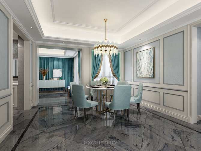 通過(guò)轉(zhuǎn)角墻面捫皮設(shè)計(jì),將客廳和餐廳的圍合感凸顯出來(lái),打造溫馨舒適的居家氛圍。墻面的灰鏡也很巧妙地增加了空間的開闊感。