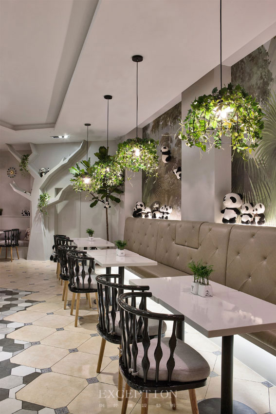 黑白灰的經(jīng)典用色搭配,讓整個空間更加有層次感,隨處可見的植被撩動心弦。在這樣的場景,還不快快抱起熊貓寶寶來張美美的自拍吧!
