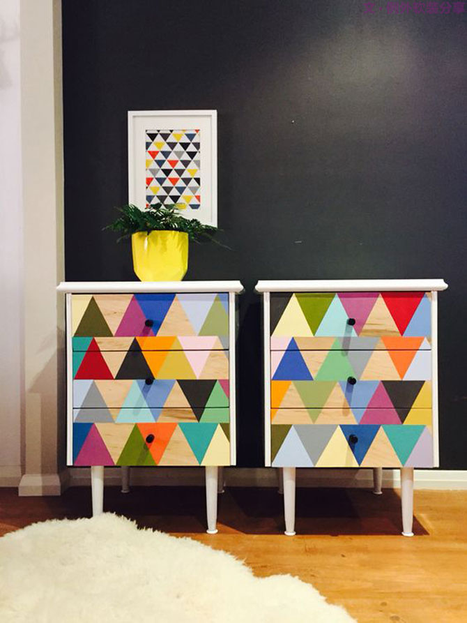 大片留白的墻,簡單大氣的家具,老覺得少了什么元素。沒錯,是少了色彩,這些彩色幾何圖案家具給家?guī)硪恍┝裂鄣纳省?