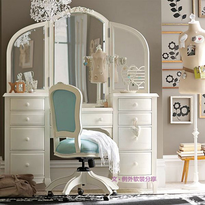 由于別墅在使用空間上相比會大很多,這種情況下,女孩房的設計可以把很多功能區(qū)域考慮進去,除了休息區(qū)域,還有學習(閱讀)區(qū)域,梳妝區(qū)域,配套衛(wèi)生間等等。以下幾款別墅女孩房軟裝設計方案風格迥異,都是可供參考的范式。