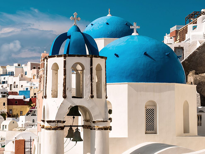 圣托里尼島就是藍(lán)白相知的色彩天堂,無(wú)數(shù)的白色小屋依山而建,屋墻全是白色,屋頂為深藍(lán)色,與天空、海洋渾然一體,形成了地中海獨(dú)有的景觀。