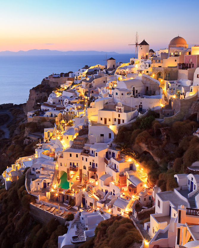 日落時(shí)分的圣托里尼,雋美靜謐如斯,伴著愛(ài)人,只愿沉醉此刻。