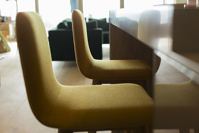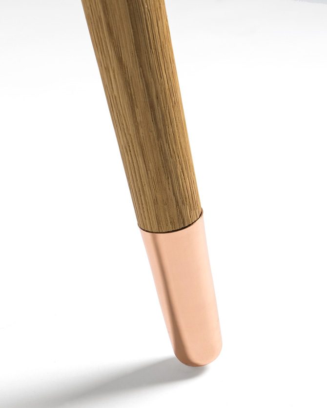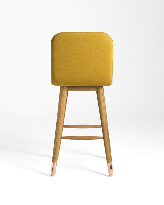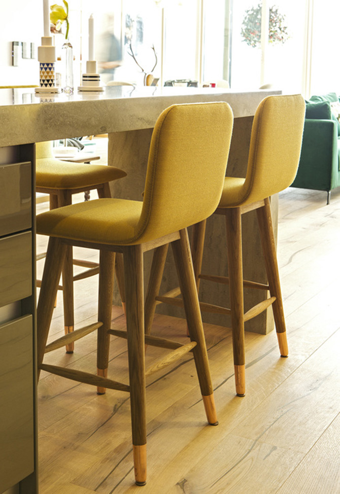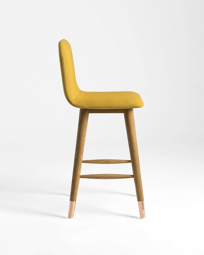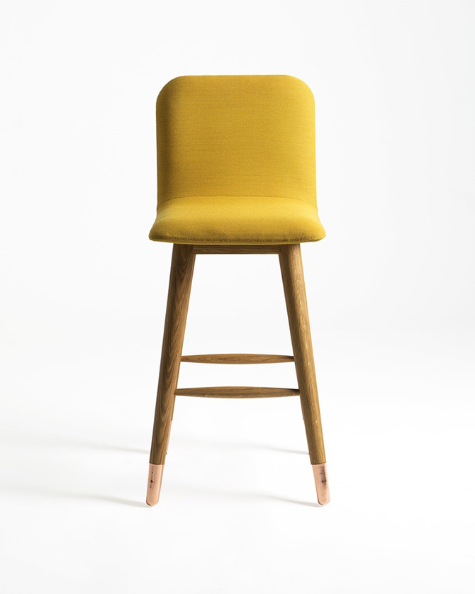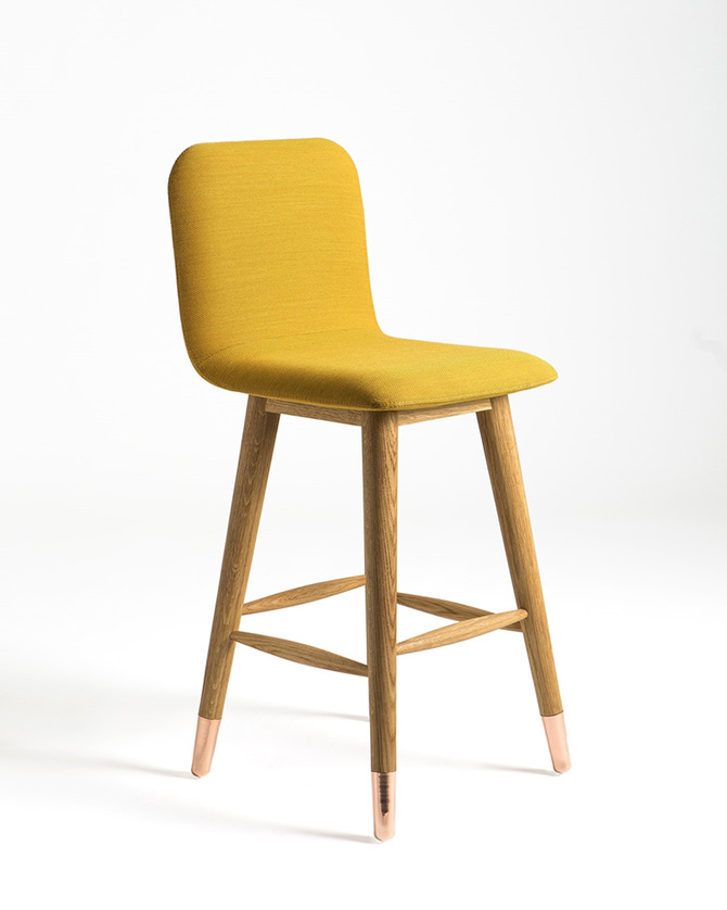 設(shè)計亮點:拋光銅和白橡木結(jié)合的凳腿,色彩鮮艷的Kvadrat軟包。