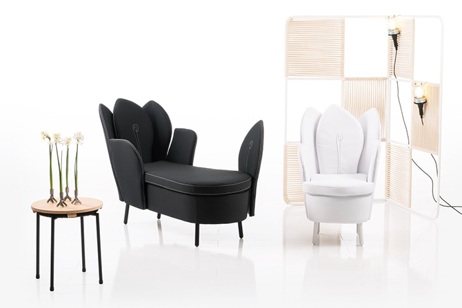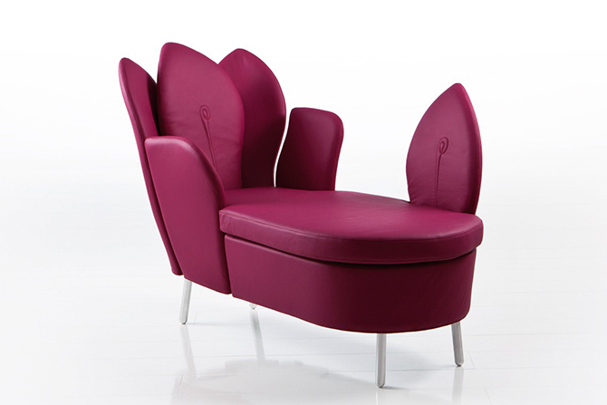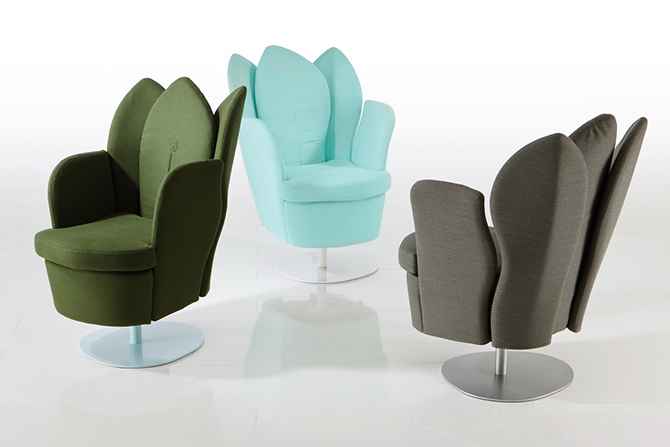 Morning Dew的特別之處就在于如重疊花瓣般的靠背,高高聳起的“花瓣”從各個(gè)角度為使用者提供支撐,并且具有可拆卸,可移動(dòng)功能。細(xì)膩的紡織品或柔軟的皮革打造舒適的坐感,椅腿材質(zhì)有天然櫸木、黑鉻或鋁質(zhì)三種,單人沙發(fā)還有轉(zhuǎn)椅形制可供選擇。亮黃色的長(zhǎng)榻與鋁質(zhì)椅腳給人輕快的感覺,亮麗醒目,淺色沙發(fā)與木質(zhì)椅腳搭配起來分外柔和,為空間的優(yōu)雅加分。