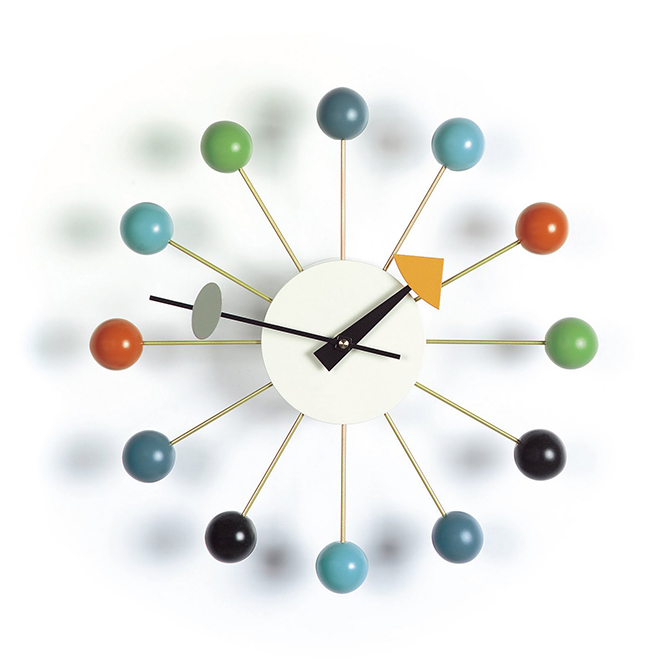 Ball  clock(彩球掛鐘)自出品至今暢銷全球半個多世紀,原版已經(jīng)進入博物館,被視為鐘表設計的經(jīng)典之作,被國內頂尖家居雜志ELLE、瑞麗頻繁推介。掛鐘金屬部分全部采用進口鋁合金制作,彩球采用實木烤漆。