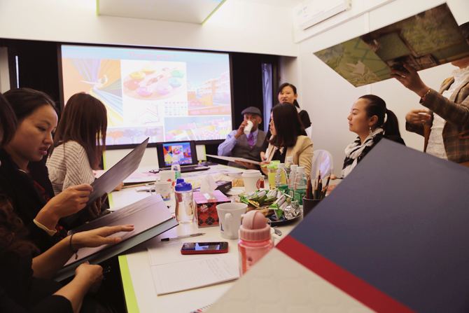 與此同時鴻藝源設(shè)計(jì)、例外陳設(shè)藝術(shù)設(shè)計(jì)師積極與其交流互動,探討中西方色彩運(yùn)用的異同及配色原則,就例外實(shí)際設(shè)計(jì)方案交流色彩搭配疑問及設(shè)計(jì)風(fēng)格。期間大家還參觀了Leo Santana親手製作的2014年國際流行色配色板及其部分設(shè)計(jì)作品,與大家熱情的分享設(shè)計(jì)歷程,分享與客戶溝通的技巧及方法,並和鴻藝源設(shè)計(jì)、例外陳設(shè)藝術(shù)的諸位同仁共勉。