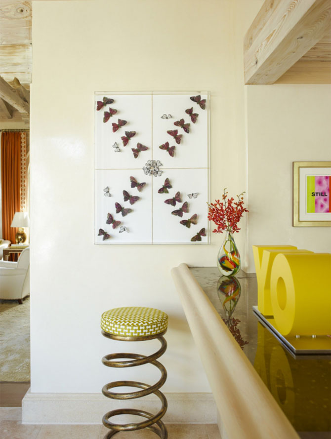 值得一提的是軟裝布置亮點(diǎn)頗多,用作隔斷的琉璃幕簾,起風(fēng)時(shí)輕輕撞擊清脆悅耳,復(fù)古梳妝鏡體現(xiàn)出精湛的鏤空雕刻工藝,吧臺(tái)邊彈簧形狀的凳子別致討喜,就連蝴蝶標(biāo)本掛畫(huà)也別具匠心。