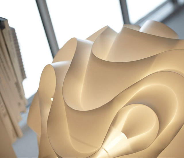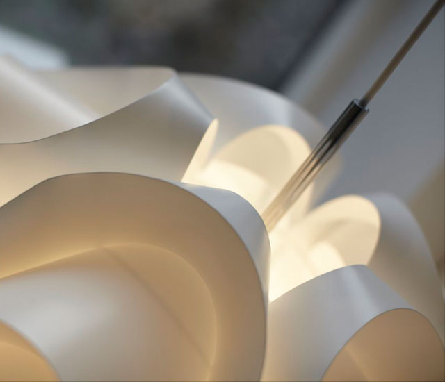 自然舒展的波浪形外觀,賦予燈光神奇的動(dòng)感,其中不乏精巧的角度計(jì)算與過硬的褶皺工藝。