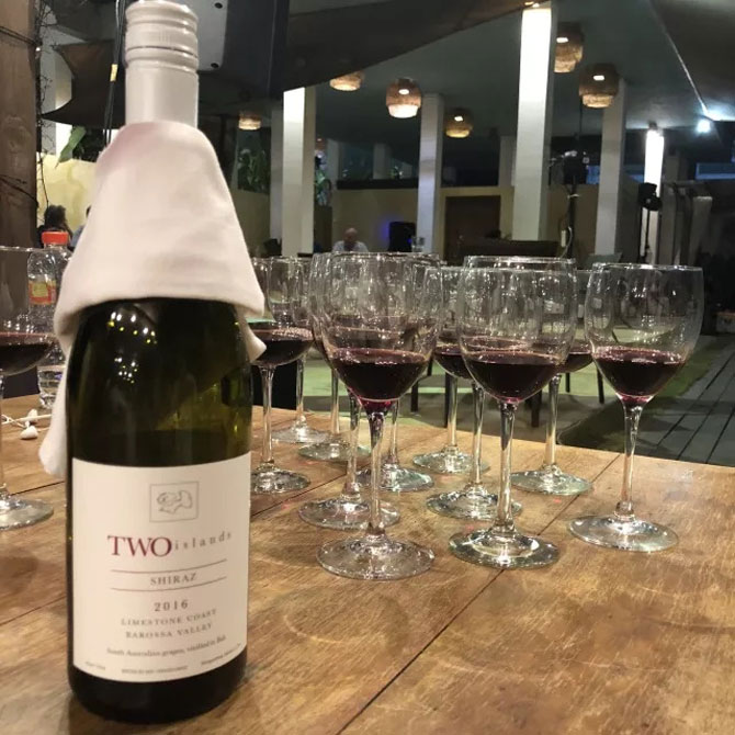 我們?cè)诤_叢蛷d喝著酒為世界杯而歡呼……