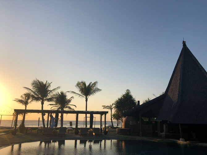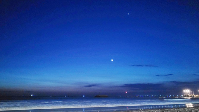 看了日出,哪能少得了日落?因?yàn)槎萝?chē)我們完美錯(cuò)過(guò)了金巴蘭海灘的日落,但海邊的夜色了解一下?