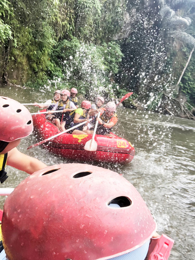 Tips:阿勇河漂流絕對(duì)是值得一去的地方,每條船上都配有教練,安全性很高。但一定要注意在你周?chē)拇?,免不了要?lái)一場(chǎng)陌生游客之間的“水戰(zhàn)”問(wèn)候!