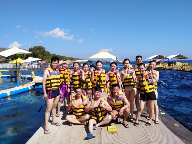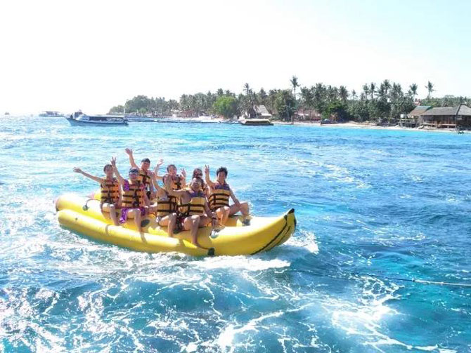Tips:除了巴厘島,稍遠(yuǎn)一點(diǎn)的貝尼達(dá)島其實(shí)也是個(gè)不錯(cuò)的選擇。這里的水上項(xiàng)目也很豐富,團(tuán)隊(duì)旅游的話(huà)一定要注意講價(jià),套票也很實(shí)惠,比南灣便宜很多!