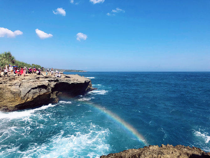 1、如何巧妙地避開(kāi)游客又拍到彩虹,這就是學(xué)問(wèn)啦!(我們的方法是“人多勢(shì)眾”,幾個(gè)人一起拍,別人一般都會(huì)自覺(jué)退出鏡頭)不過(guò)拍照的時(shí)候一定要注意安全,被大浪卷進(jìn)海里可不是開(kāi)玩笑的!