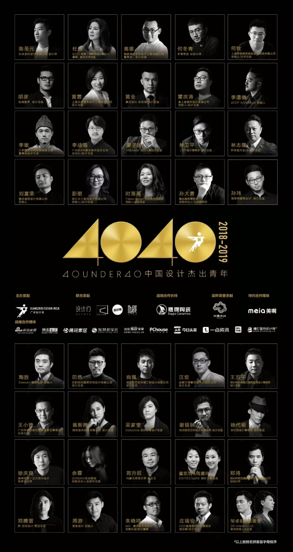 經(jīng)歷火熱的"城市榜""省區(qū)榜"層層嚴(yán)格篩選,鄭鴻先生最終榮登“40 UNDER 40 中國(guó)設(shè)計(jì)杰出青年(2018-2019)”全國(guó)榜單。